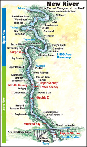 - The Upper New is more tame and kid-friendly for beginners with a few challenging intermediate Class III rapids. The Lower New boasts their most popular whitewater with more than 25 Class II to Class IV rapids.